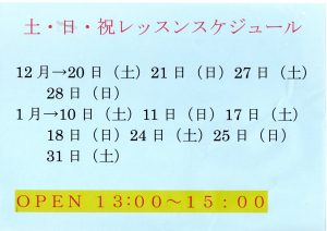 土日祝もやってま~す!エンジョイホリデー・12月1月レッスンスケジュール