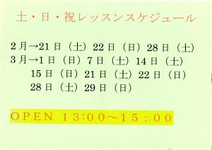 土日祝もやってま~す!エンジョイホリデー・2月3月レッスンスケジュール